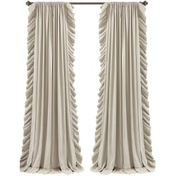 Ruffle Window Curtain Panel Set, Pair, 54" W x 84" L, - Flowy Curtain Set - Romantic Ruffle Curtains