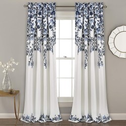 Light Filtering Window Panel Set, Pair - Floral Vine Print, Beautiful, Modern, Elegant Home Decor - 52" W x 84" L