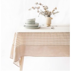 Gingham Checkered Farmhouse Rustic Picnic Style Decoration Rectangle Natural Stonewashed Cotton Tablecloth